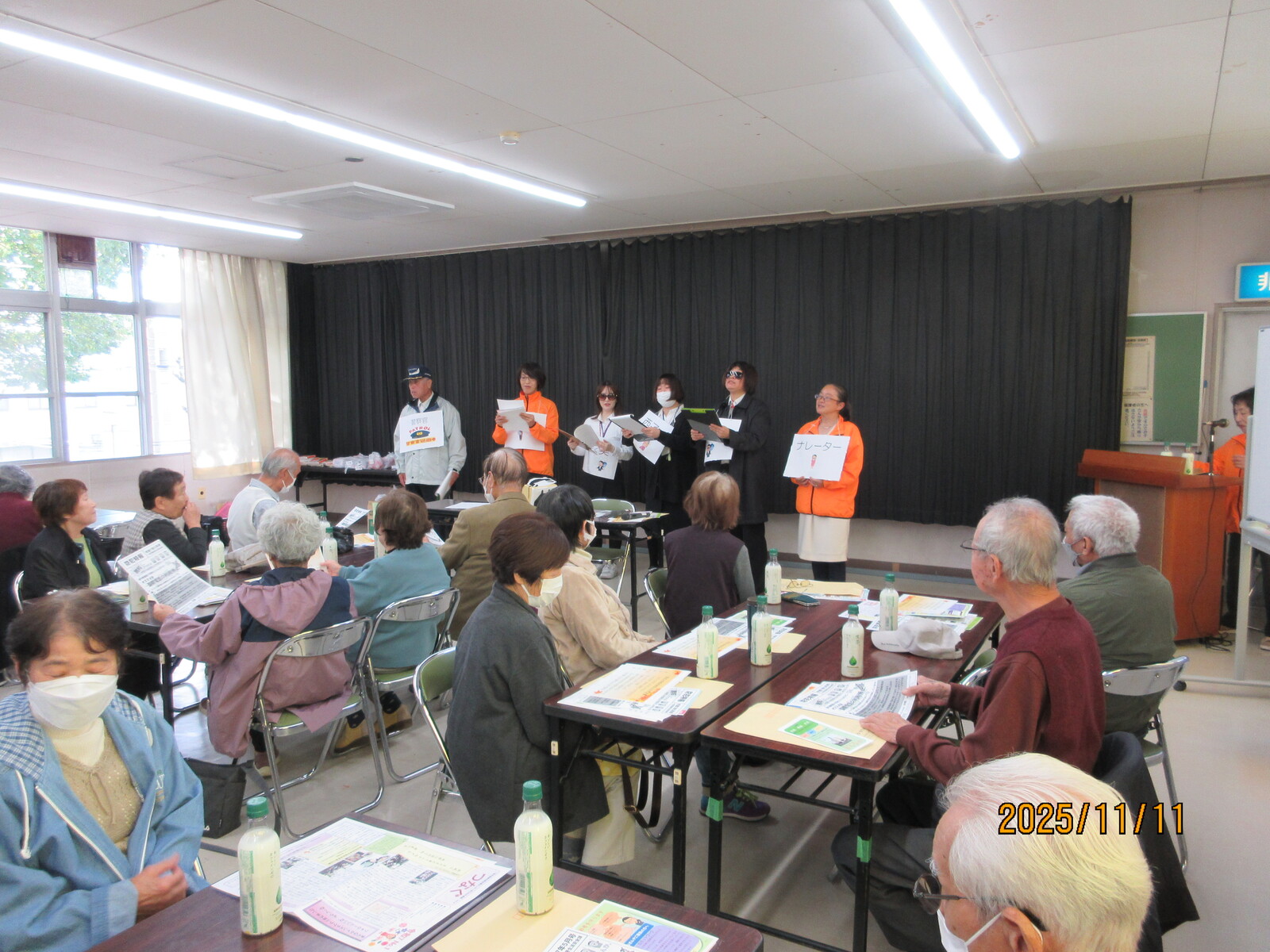 食後は、特殊詐欺防止対策として、「特殊詐欺、みんなで見守り、撲滅をへ」と題した寸劇を、