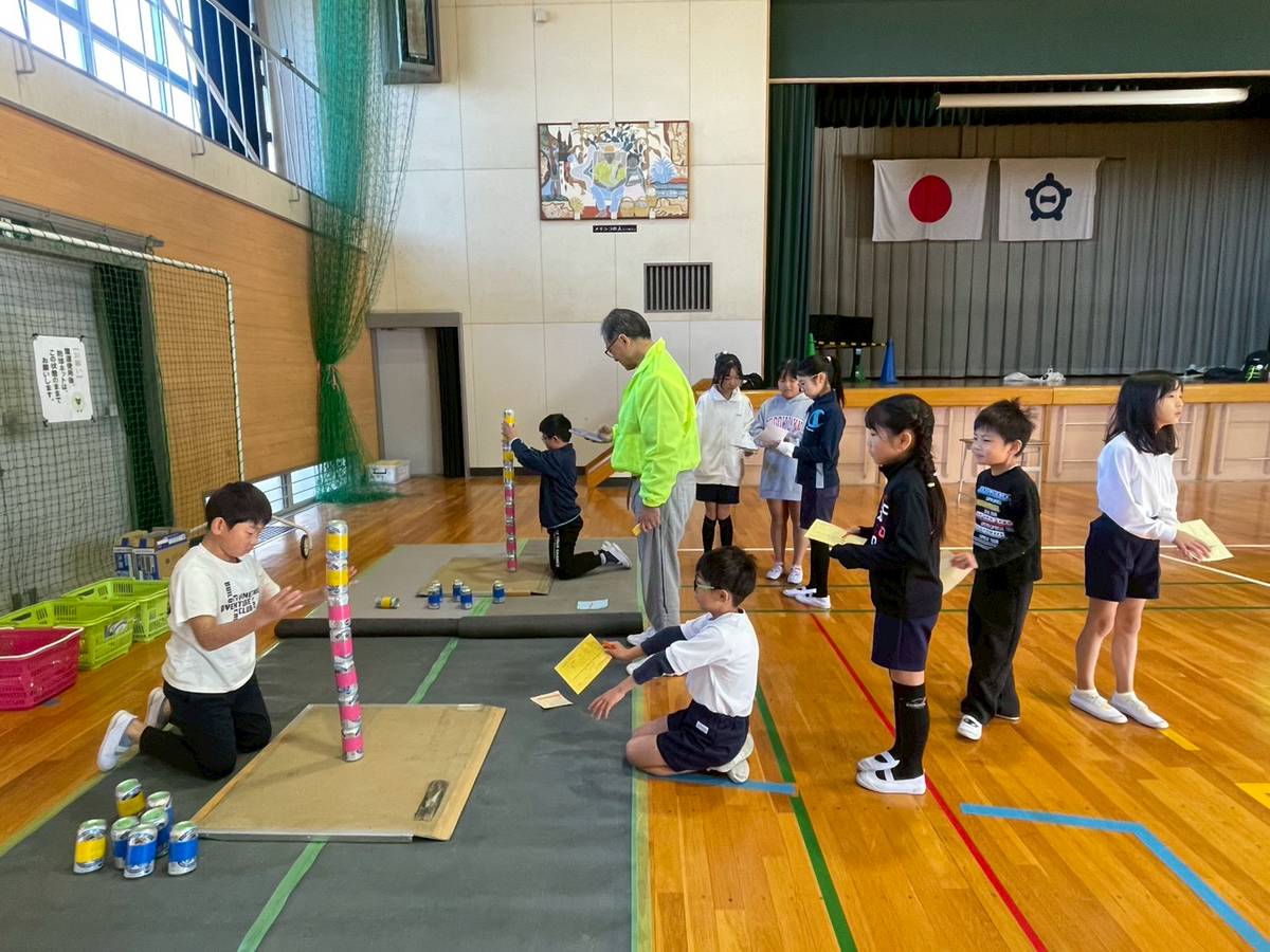 「わー!入った入った!」「やったー!50点!」 朝の気温3℃と冷え込んだ宮西小学校の体育館には、子どもたちの元気な歓声が響きました。今年はチャレンジゲームと称し、上履き飛ばし・ねらってポイ玉入れ・空き缶つみ等々 5種類の種目にチャレンジし得点を競いました。上履き飛ばしでは11m以上飛ばし、最高点50点を獲得した子、空き缶つみではビール缶11個を積み上げた子もいて、「すごーい!」と会場内からは大きな拍手がおくられました。そして、お待ちかねのドッジボール。学年男女混合チームでしたが、上級生は下級生をいたわりながらプレーし、下級生は上級生に負けまいと必死に頑張る そんな姿が印象的でした。おとなチームとの対戦は大人気。子どもたちの熱量に負けじと汗だくでコートを駆け回るパパやママ。みんな本当に楽しそうでした。寒さも吹き飛ぶ、笑顔でいっぱいの1日となりました。