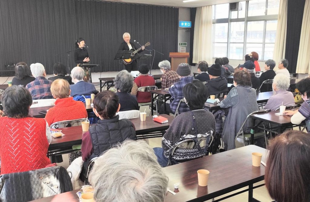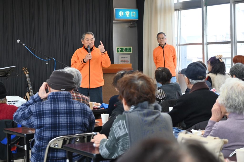 宮西ふれあいサロン(2/12)By E.Mogura ホーム2026年3月7日宮西ふれあいサロン(2/12) 第5回「宮西ふれあいサロン」2月12日(木) 見守りネットワーク推進委員会 第1部は、夫婦デュオ「柿の種」さんによる演奏で、「ふるさと」「銀座カンカン娘」などの懐かしい歌やオリジナル曲をいっしょに歌ったり、手拍子をしたり、しんみり聞き入ったり。曲間のトークも楽しく、あっという間の1時間でした。第2部は、一宮市民病院脳卒中センター副センター長の秋医師による脳卒中のお話で、脳卒中の原因、予防、治療についてとてもわかりやすく話してくださいました。突然顔がゆがむ、腕が下がる、うまくしゃべれないなどの症状が出たときは、ためらわず、すぐに救急車を呼ぶことが大切だそうです。みなさんとても熱心に聴き入っていました。 バックナンバーはこちら Post Views: 0